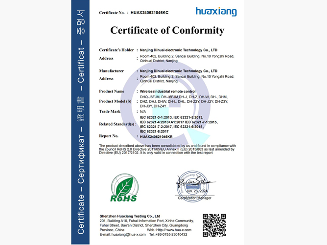南京帝淮电子科技有限公司,国内工业遥控器行业领军企业,自主研发、定制、非标设计各类工业级无线遥控器、工业级有线控制器、智能化自主算法逻辑的本地控制器等系列产品。已经申请及正在申请的技术专利、外观专利有近三十项左右,并通过了CE欧盟认证、国家级试验检验报告、EMC电磁兼容认证等。