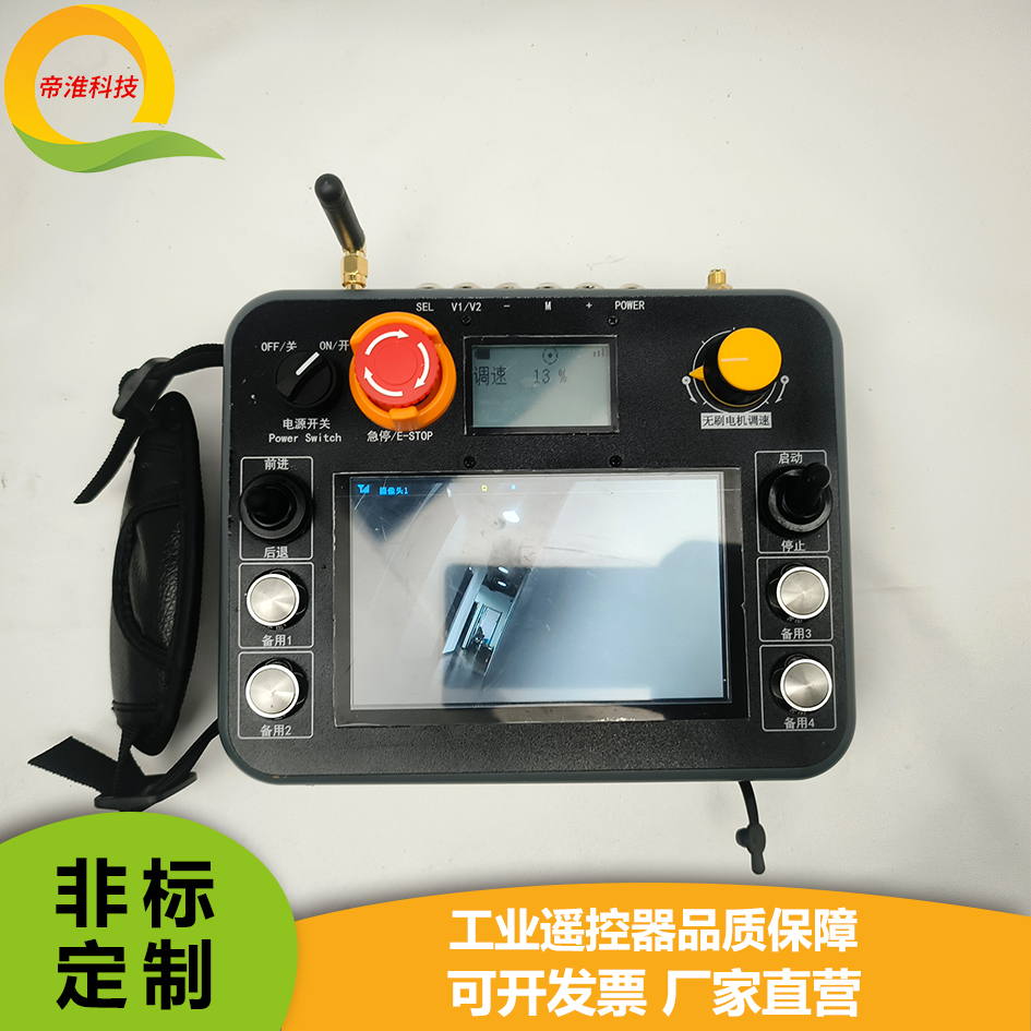 1个双轴摇杆+12个按键+1个两档旋转开关7寸触摸屏平板型工业无线遥控器 -